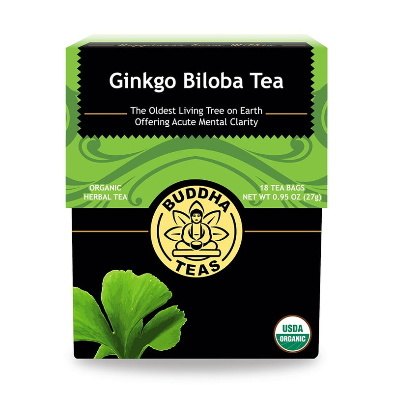 One of the oldest species of trees in the world, ginkgo biloba is esteemed in its native habitat of China, and has become a popular herbal tea to support various systems of the body. Super mild, somewhat earthy, easy-to-drink Buddha Teas Ginkgo Biloba Tea is well-suited for double-dipping. Pump up the benefits of gingko biloba by adding a complementary herb, such as anise, blackberry leaf Tea or chamomile.