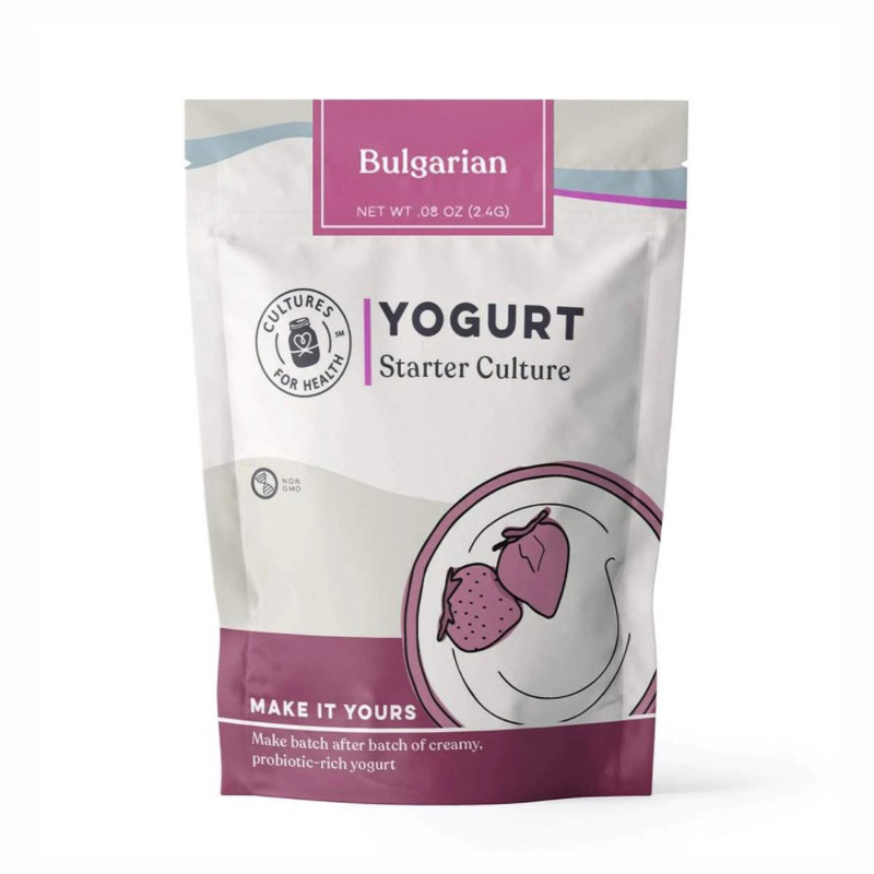 Bulgarian yogurt starter culture is the creamiest of the thermophilic heirloom yogurts. This yogurt starter can be re-cultured indefinitely with a small amount of each batch used to make the next batch. Thick, rich, and mild, Bulgarian yogurt is similar to "European-style" yogurts. Each box contains 2 packets of yogurt starter. Activate 1 packet of yogurt culture using 1 quart pasteurized milk; store 2nd packet in the freezer as a back-up.