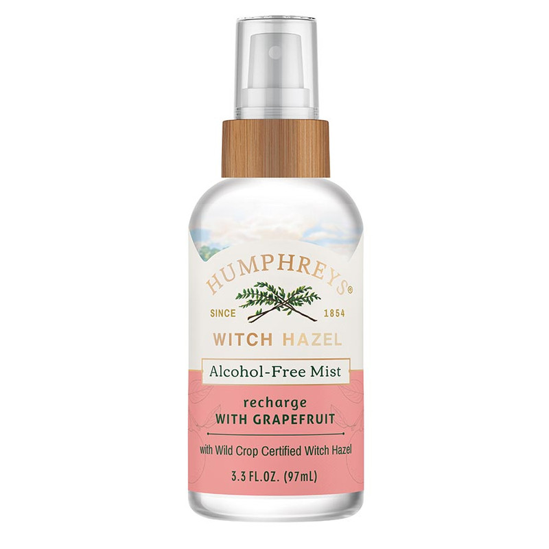 Recharge your skin and senses with the wild wonders of certified organic witch hazel. Humphreys Recharge Witch Hazel + Grapefruit Alcohol-Free Mist helps reduce excess oil and clears your complexion, for the clean, calm, conditioned skin you were born to face the world with. Humphreys commitment to natural beauty starts with our use of certified organic witch hazel, sustainably harvested in the wild and distilled to capture the purest therapeutic essence of the plant. Our products are always free from dyes, sulfates, parabens, phthalates and gluten.